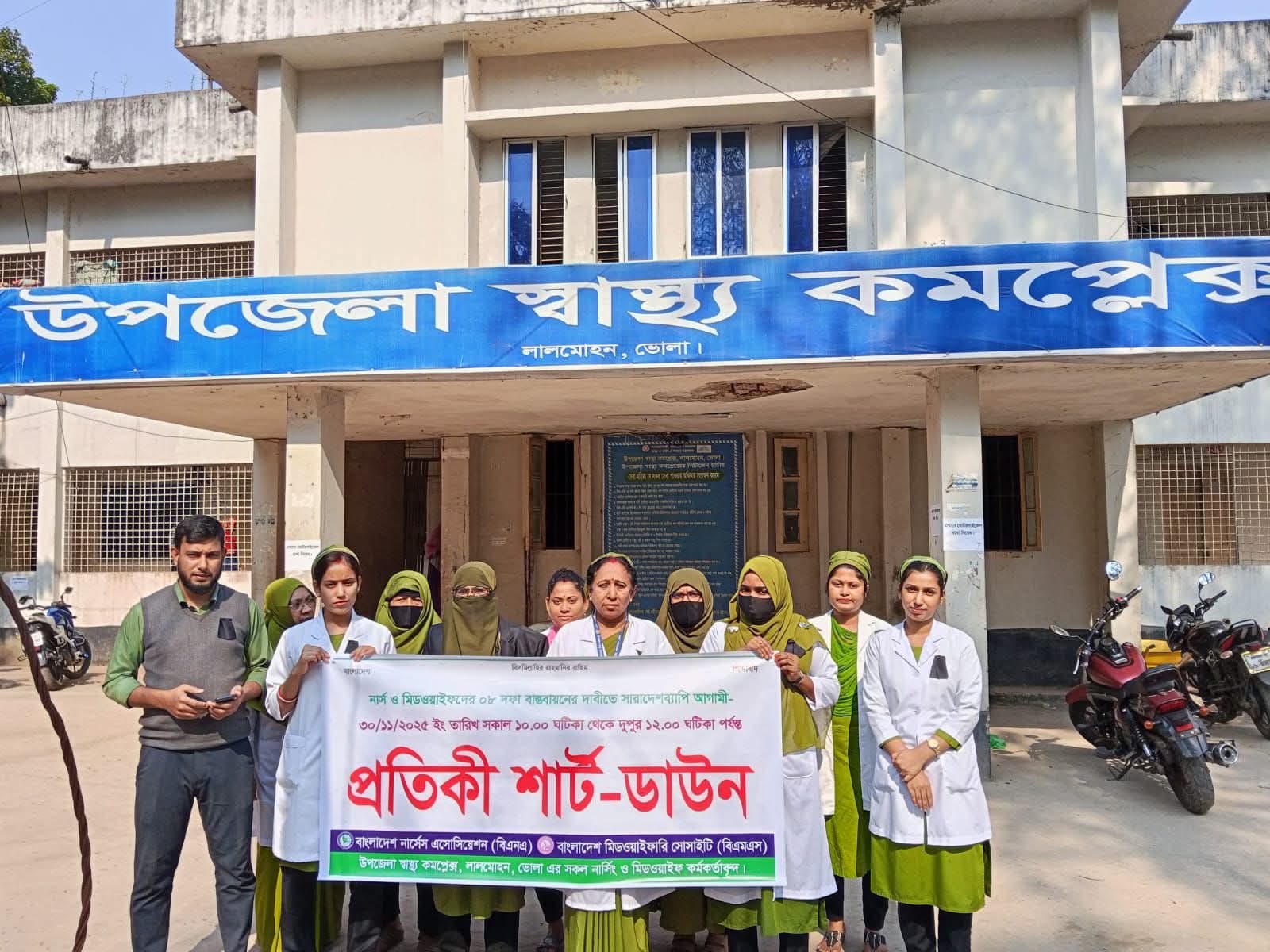 লালমোহনে মেডিকেল টেকনোলজিস্টদের প্রতীকী কর্মবিরতি পালন